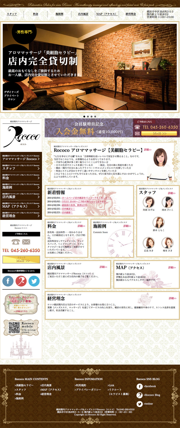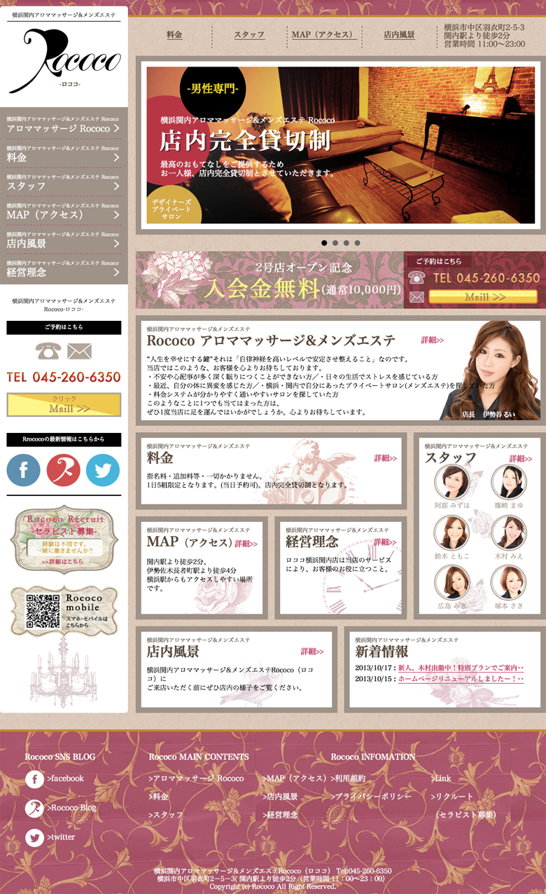 横浜マッサージ&メンズエステRococo~ロココ〜 ホームページが本日からリニューアルしました。 こちらが前のホームページ こちらがリニューアルしたホームページ 今回はロココカラーにし、写真を大きくしました。 どちらがお好みですかーー?? 横浜マッサージ&メンズエステ Rococo~ロココ〜